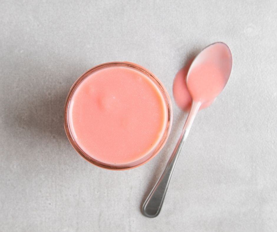 - Turn the burner to medium-high heat and start whisking the mixture (don’t stop stirring!) as you bring it to a gentle simmer. You can add a few drops of food colouring now if you want your curd to take on that classic pink colour.